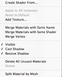 Example: Split Material by MeshThe pop-up menu depends on the name of the material or texture clicked.